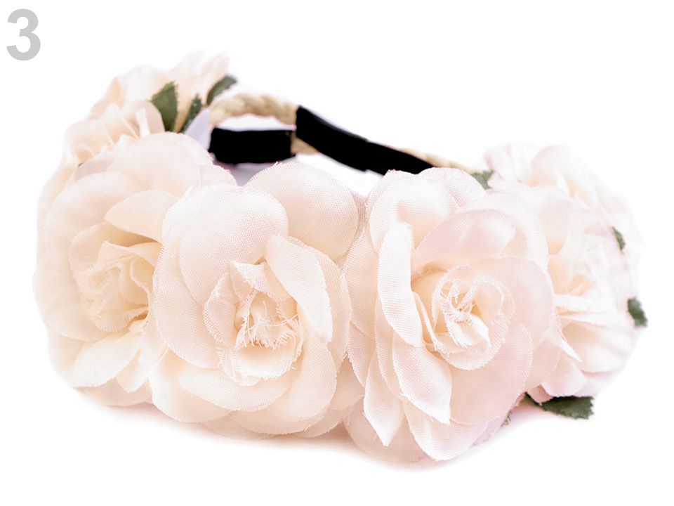 Květinová čelenka s růžemi romanticky ozdobí váš účes. Ať už budete mít vlasy rozpuštěné či zapletené, budete vypadat křehce. Čelenku využijí i dívky, které čeká První svaté přijímání, neměla by chybět v účesu žádné družičky.
