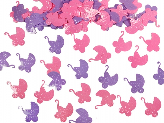 Konfety holografické  - růžovo-fialové kočárky.
