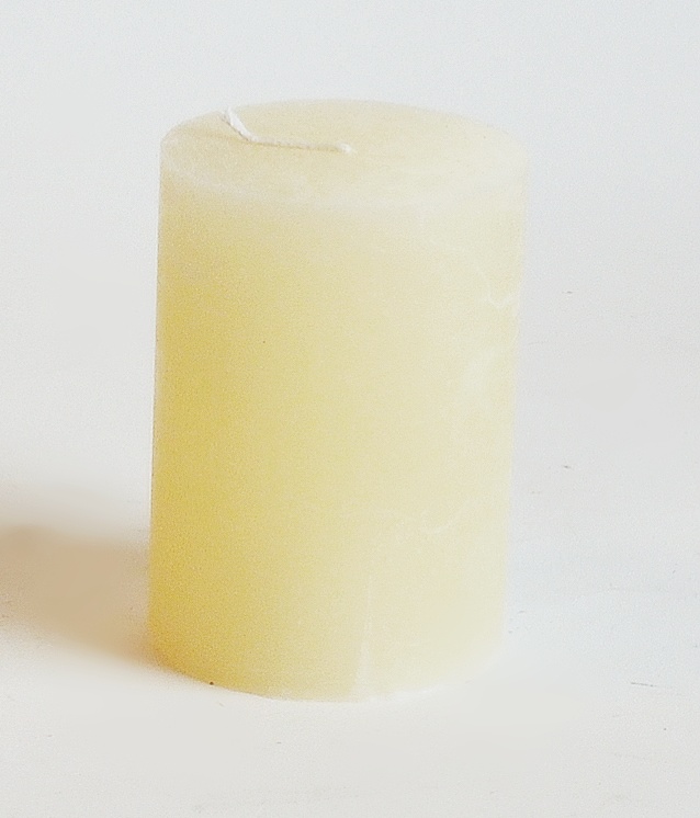 Svíčka válcová v rustikálním stylu v barvě slonová kost.