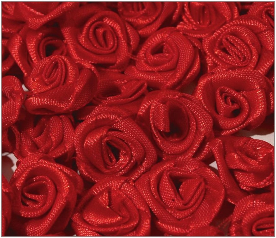 Malé saténové růžičky vhodné k přišití či k přilepení jako ozdoba na dárky, jmenovky, vývazky, oznámení, podvazky apod.