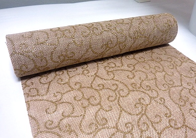 Složení: 100% JUTA. Zlatý třpytivý tisk ornamentů.